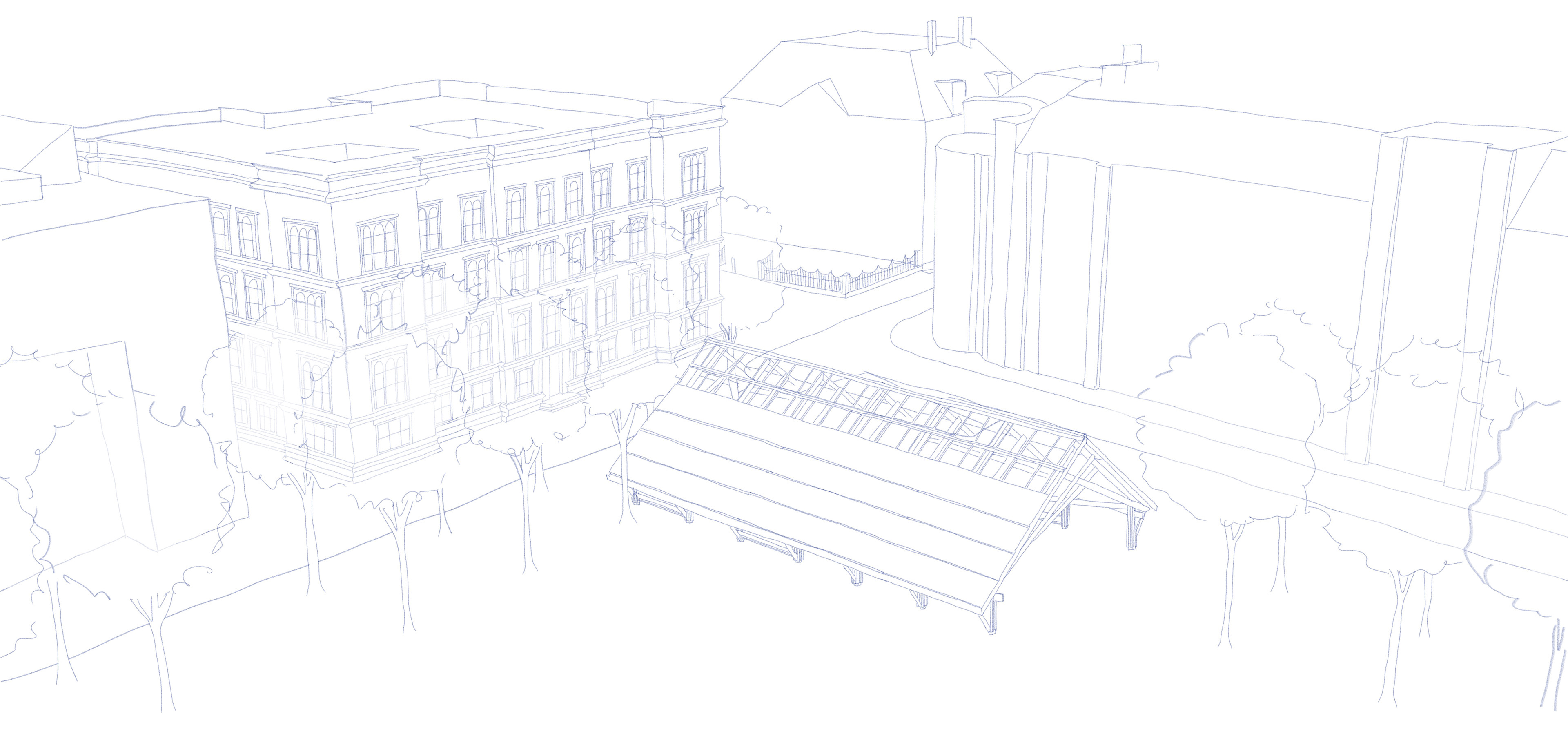 1. House of Free Speech: a wooden pavilion located on the North-West corner of Het Plein, underneath which flexible programme infill is possible;